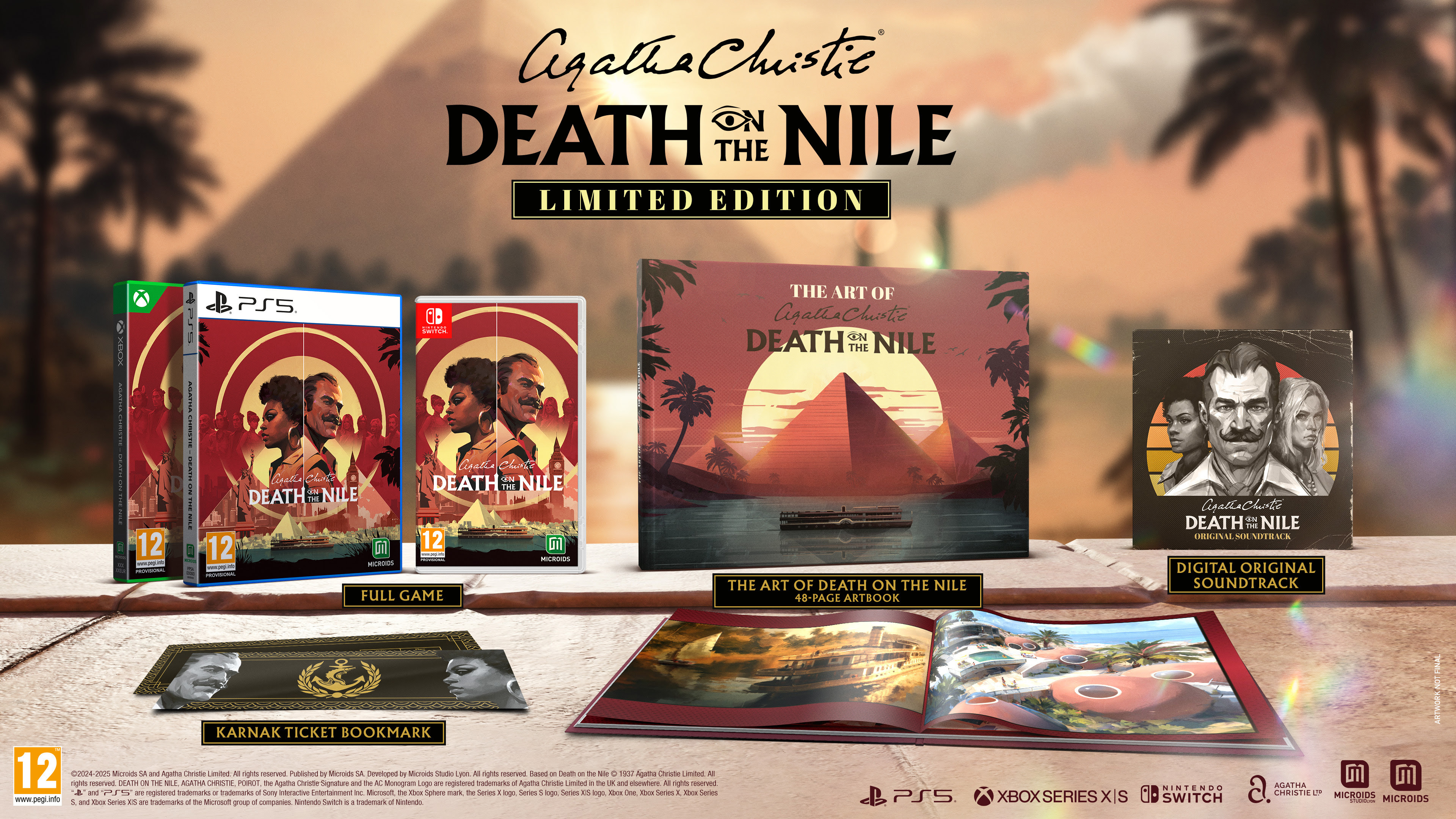 Microids y Microids Studio Lyon se complacen en desvelar la Edición Limitada de Agatha Christie – Muerte en el Nilo, cuyo lanzamiento está previsto para el 25 de septiembre de 2025 en PlayStation 5, Xbox Series y Nintendo Switch. La Edición Limitada incluye: