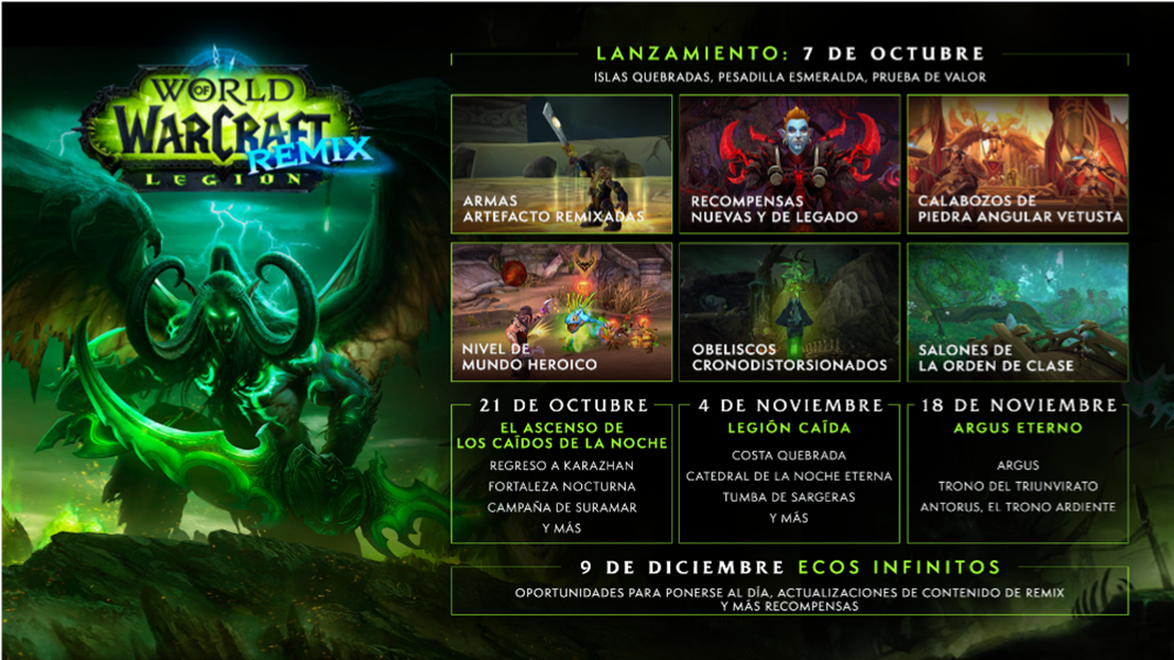 Eternus y el Vuelo Infinito vuelven a explorar el pasado y esta vez se enfocarán en los eventos de la exitosa expansión Legion. ¡World of Warcraft: Legion Remix llega el 7 de octubre!